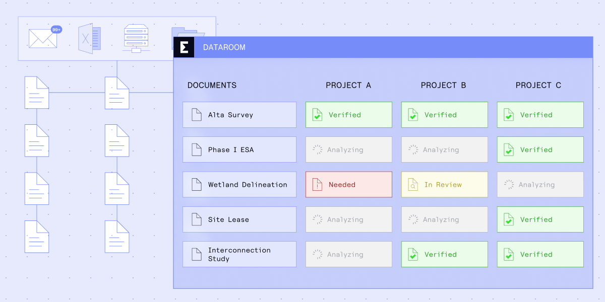 The structural challenge is baked into the asset class. In DG, each project is small enough that one-off diligence processes don't scale — but every project still carries real risk in the details. When multiple parties are reviewing the same documents across different milestones, the window for version confusion, duplicated effort, and misaligned assumptions widens with every new project added to the portfolio.