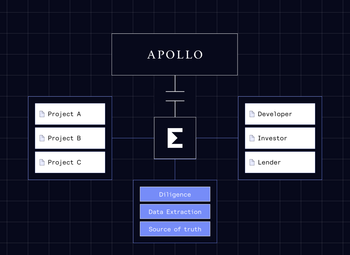 The infrastructure behind this workflow with organized project records, centralized RFIs, validated model inputs, and a complete audit trail is what lets Apollo run diligence on dozens of projects without scaling headcount or losing rigor. Instead of managing a different process for every project and every counterparty, Apollo runs one engine that scales with the portfolio.