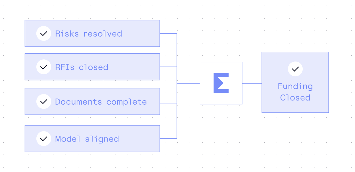 Once all necessary items are resolved and open risks have been dispositioned, the project reaches close and is funded. Euclid provides a complete audit trail of diligence findings, RFI resolution, and stakeholder alignment so Apollo, its investors, and legal counsel have a shared record that preserves context for post-close execution.