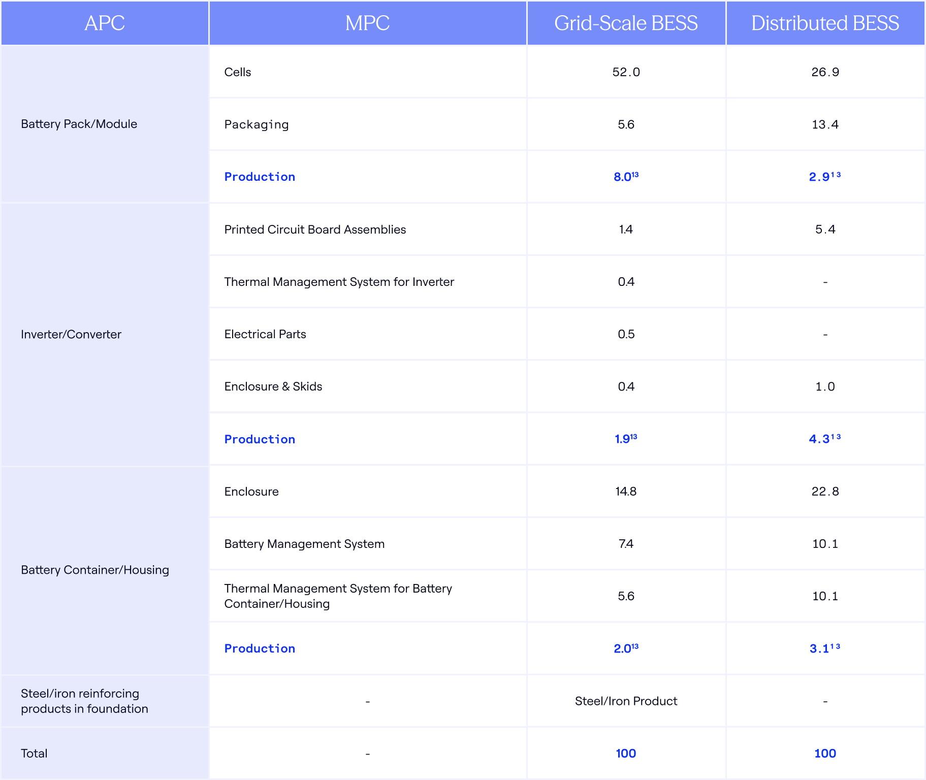 Table Example: A developer of a battery energy storage system (BESS) uses the table below from Notice 2025-08 to identify which battery components must be included in their MACR.